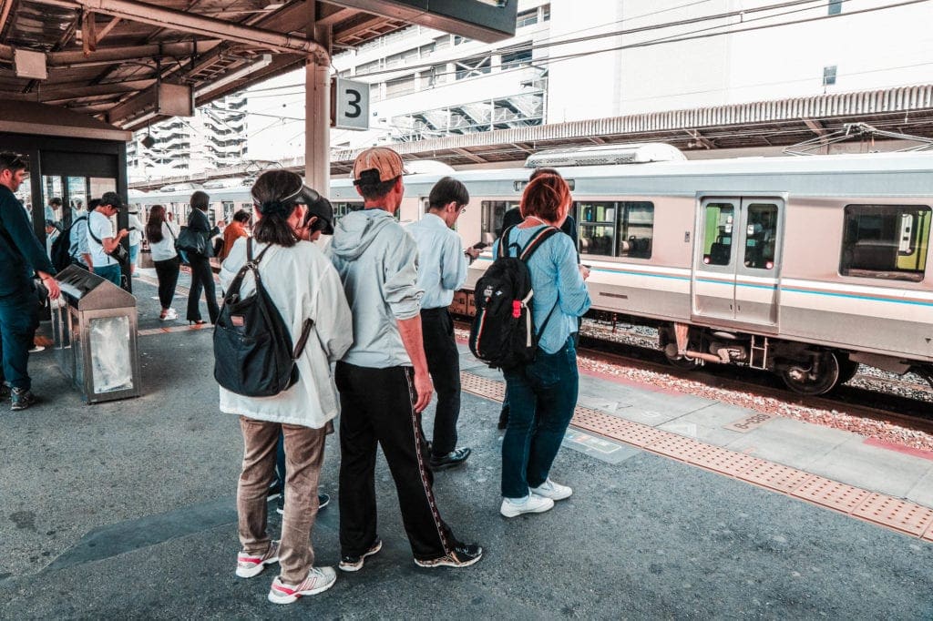 It’s so organised in Japan, people line up for the train door at the platform.