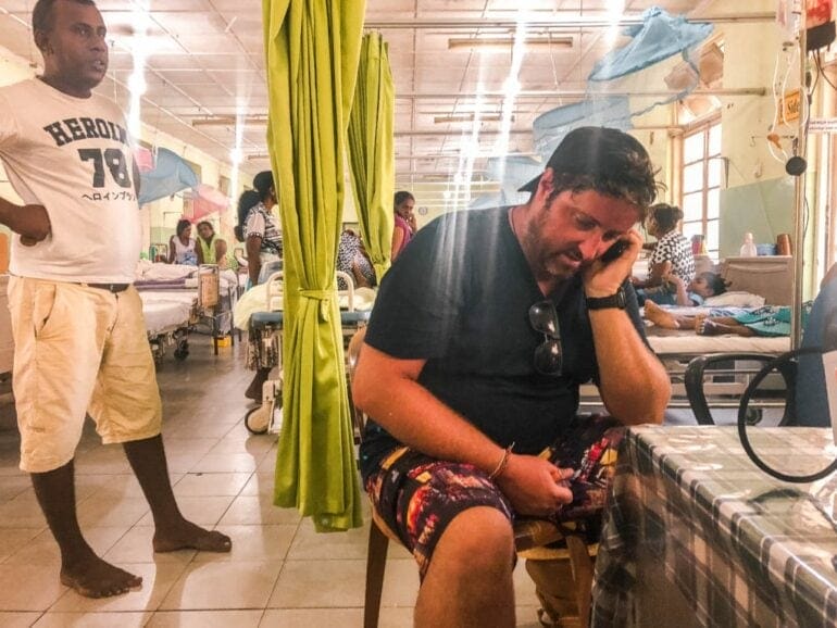 We've also been in many other situations where we needed World Nomads help. When Annie stepped on a sea urchin in a rock pool in Sri Lanka and had to be operated on(that's us in a Sri Lankan hospital in the image). Luckily World Nomads covered for this accident.