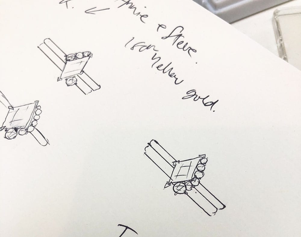 Now all we had to do was include Steve’s mum’s diamond somehow. I had no idea how this was going to work. Originally I thought we would be using just the diamond on its own but after a few designs later, we came up with something I just loved!