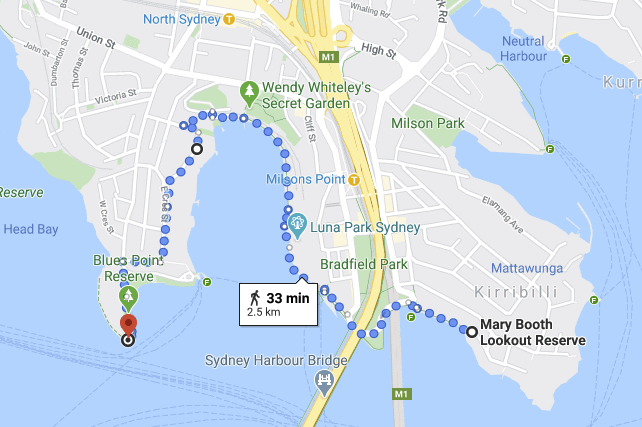 Public Transport: Get the train to Milson’s Point or ferry to Kirribilli Wharf
