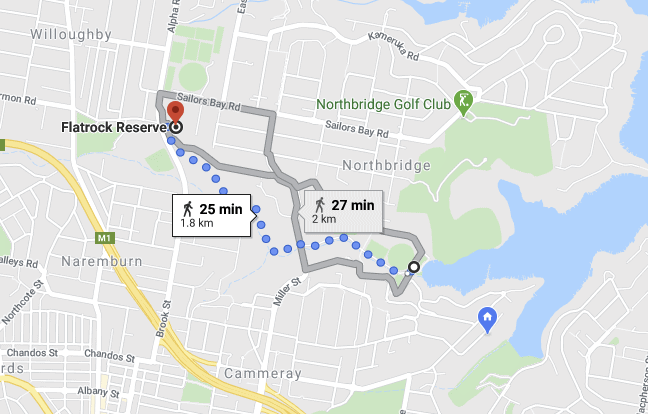When we lived in Cammeray, we used to walk along the Flat Rock Gully Walking Track quite often. Park up at the beautiful Tunk Park Boat Ramp and walk through the sports field and under the bridge.