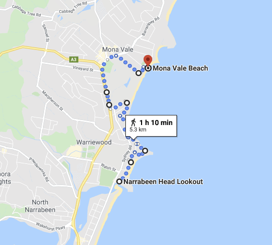 Although the map looks like you have to go onto the road to Mona Vale, you don’t. The walking track takes you right next to the golf course and onto the beach so you’ll always have cracking views of the water to look at.
