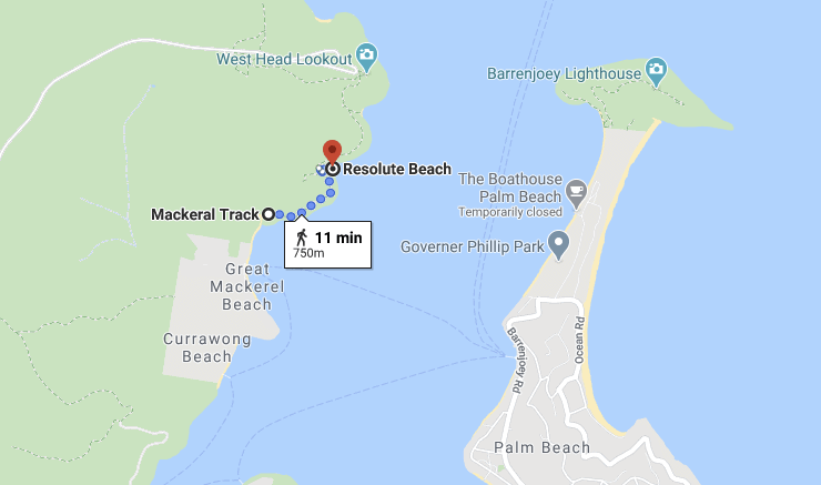 Take the ferry service from Palm Beach over to Great Mackerel Beach, then hike 30 minutes by the water over to Resolute Beach to find one of the best secluded beaches in Sydney. Although the map above might say it’s an 11 minute walk, it’s definitely not. Just make sure you leave more than enough time to walk back as you won’t want to miss the ferry.