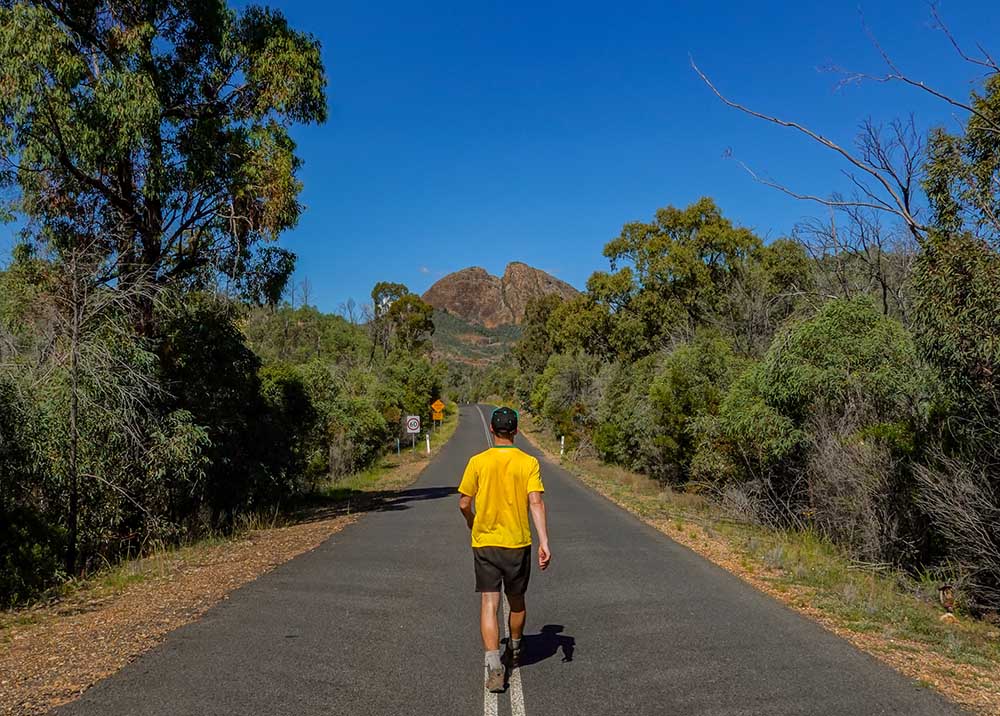 After Burbie Canyon, the last 4km are, admittedly, back on the road to Pincham car park. Although the scenery around you is still worth marvelling at, especially as you near and then round Belougery Split Rock, it is less inspiring and hard going with very tired legs.