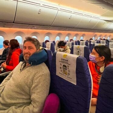 Within a minute or two, Steve enters the cave looking as scared as I was. We hear people talking and realise we’ve entered a big cave full of different tunnels. As we swim, we see some floaties and hang onto them as we head down to the next torch full of others who made it in.
