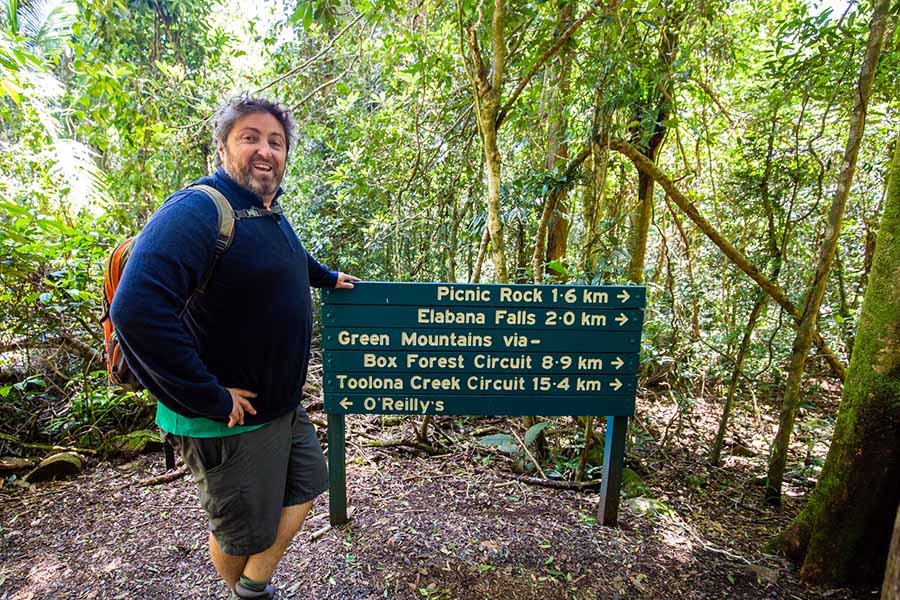 Wondering how long this rainforest hike takes if going anti-clockwise? It will take you about 1h20m each way to get to Elabana Falls. I strongly recommend continuing on for about another 10 minutes to Box Log Falls as they are lovely as well.