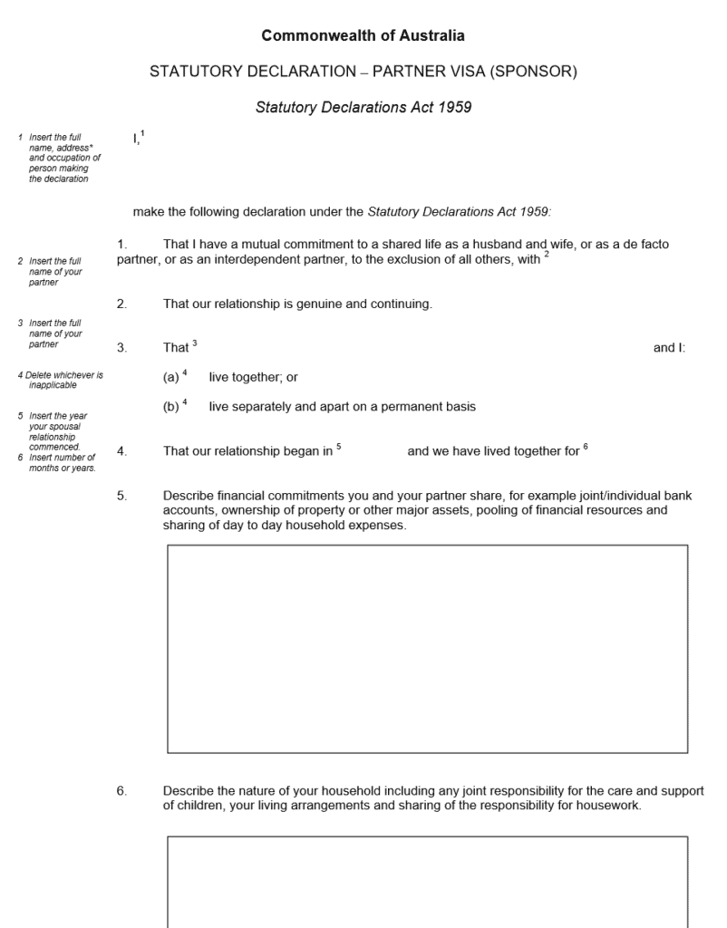 - Statutory declaration – partner visa (sponsor)