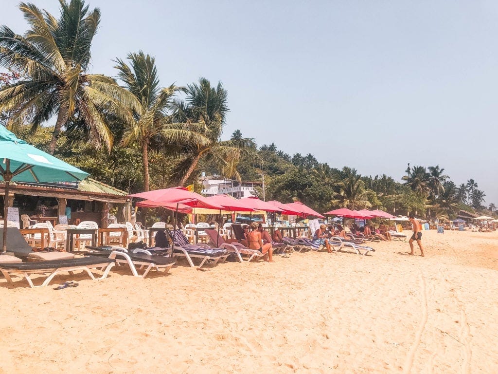 Sun loungers lined the whole beach at Mirissa