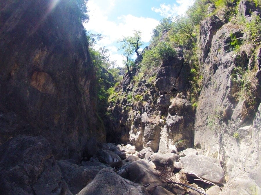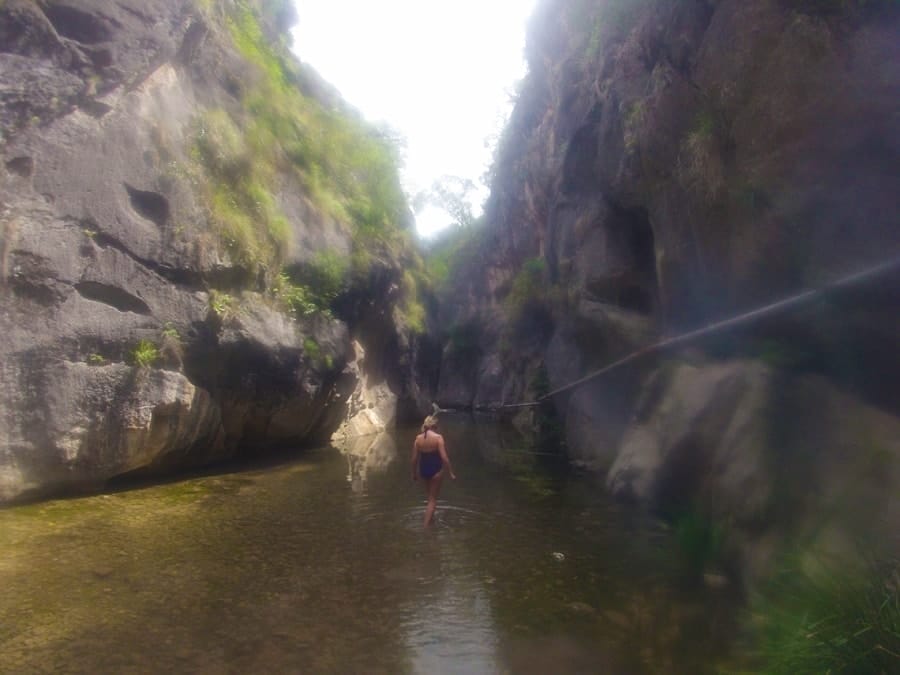 There’s an awesome camp ground there at the caves and an information centre so naturally we went in to ask where the track started. After 30 minutes, we got to the canyon and hid our few things under a rock before stripping off in our swimmers.