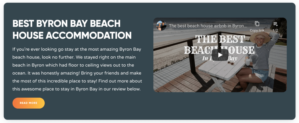 Take for example on our New South Wales & Canberra page, you’ll be able to find our content is split into areas. So if you’re looking for places to visit in Byron Bay for example, you’ll find all of the Byron Bay content grouped together.