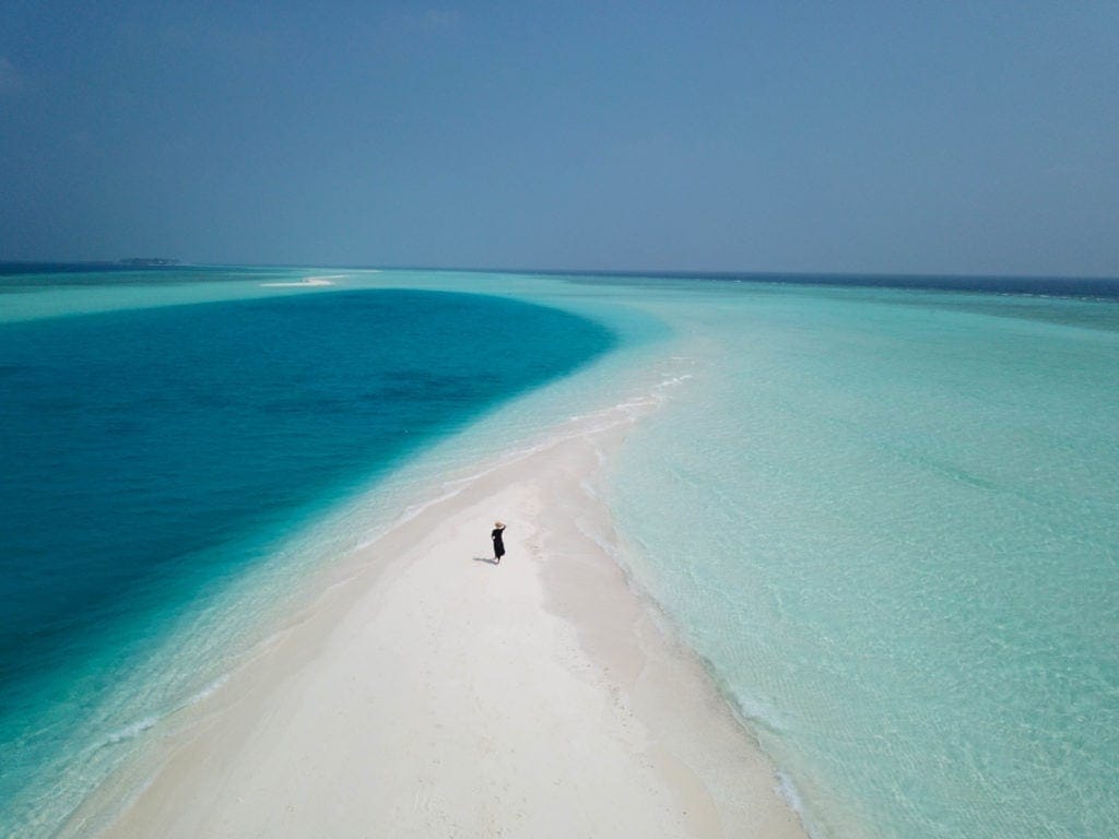 Drone shot of me in complete awe on the sandbank