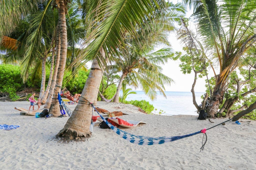 Hammocks came in the plenty, suspended by the many palm trees dotted around. There were sun loungers, washing lines to dry your towels, even a toilet so you could spend the whole day there and it was all shaded by the palm trees.
