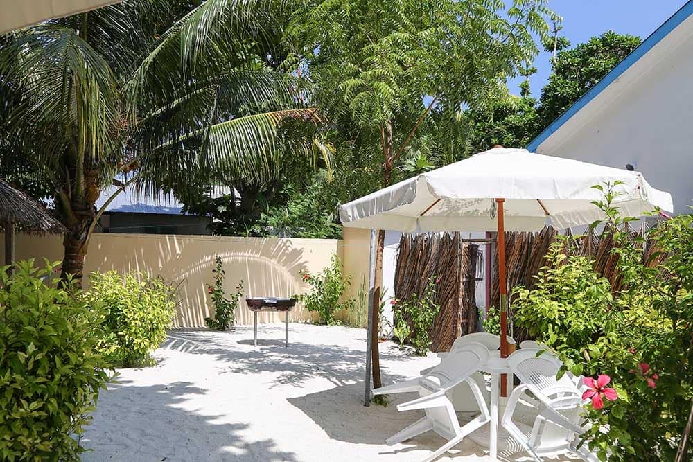 When we arrived at Royal Stay Inn, we walked into a lovely sandy garden area with tables chairs and we were greeted by our host, Faysal. Originally from Bangladesh, Faysal had been living in Maldives, working on various islands at different guest houses for the last four years. He was kind and charming and we knew we had picked a good place to stay.