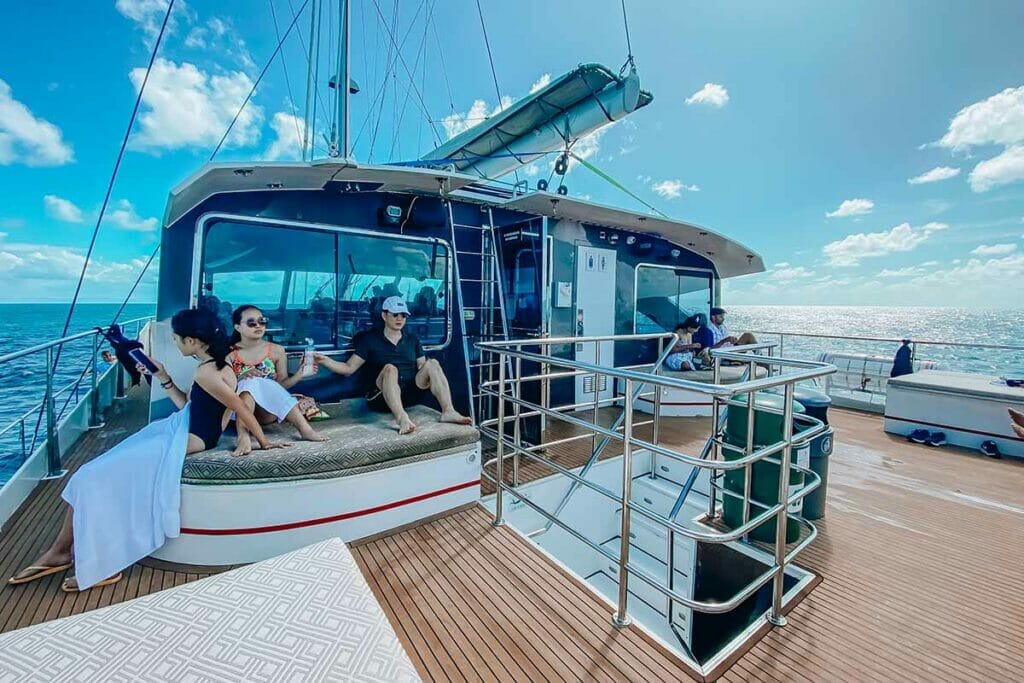 At the front of the boat there’s lots of lounges and nets where people can lay on and admire the incredible Great Barrier Reef tour!