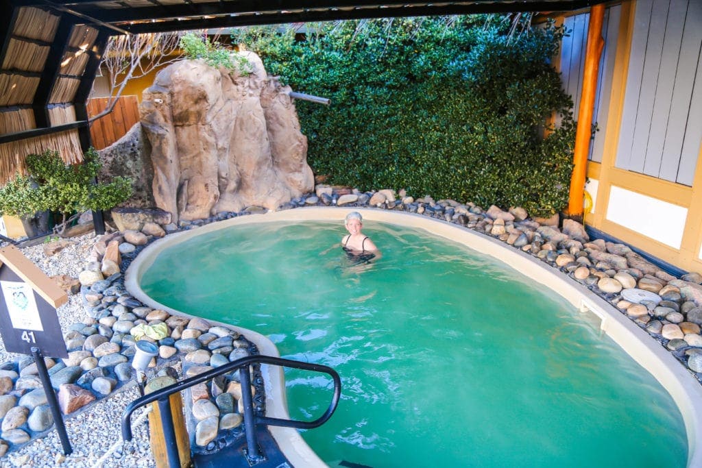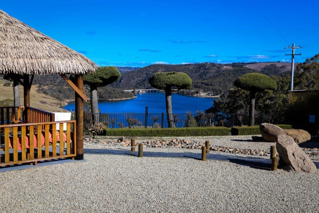 When we walked through the tea rooms and onto the outside area, the view was incredible. 5 hot pools were dotted around the grounds with a beautiful zen garden in the middle and a view over looking the Lake Lyell was absolutely breathtaking!