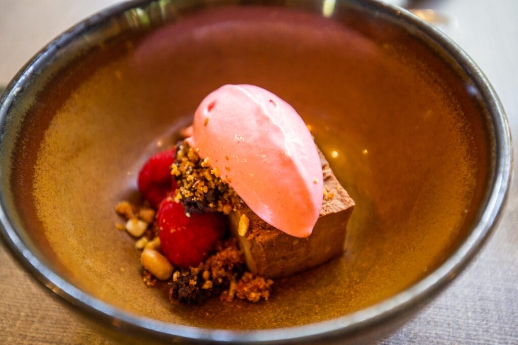 And onto our final meal of the day, which is always my favourite, the dessert. We were greeted with a chocolate parfait with exceptional raspberry ice cream. And I quote Steve’s final reaction to this degustation: