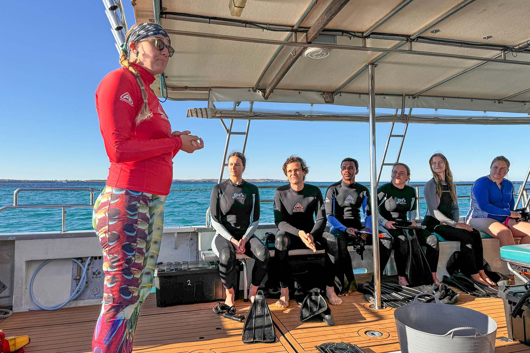 Now, we ended up doing TWO whale shark tours with Coral Bay Eco Tours which I’ll get into the reason why in a minute. Both of the tours have the same set up but the only difference was the boat crew were obviously on rotation. Here’s what the tour actually looks like.
