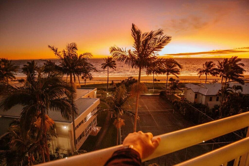 The resort sits right on the ocean-facing the sun, which goes down over the water – a rare sighting on the East Coast of Australia. The white sandy beaches are stunning with turquoise water that you’ll be as baffled as we were that it’s only 75 minutes from Brisbane.