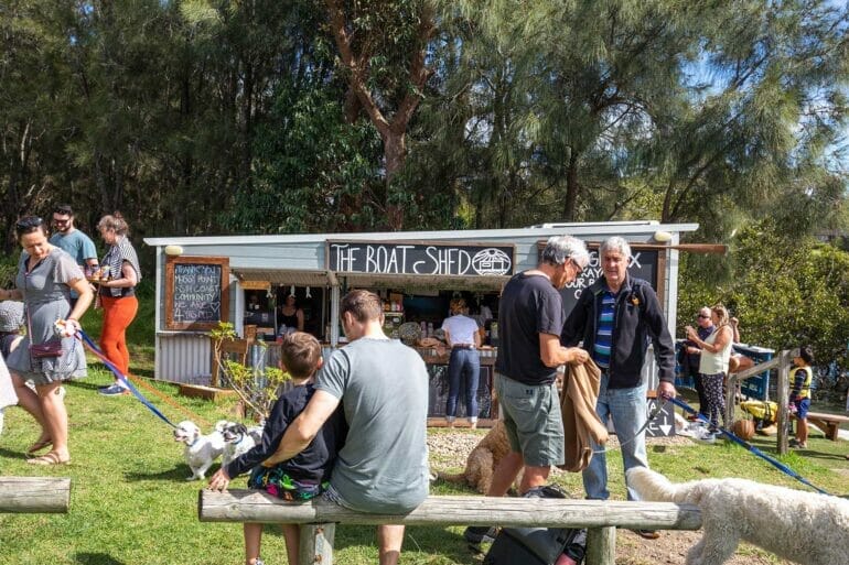 Head down to the Mossy Point Boat Ramp for a coffee at The Boat Shed and watch live music here like we did. You might see some stingrays in the crystal clear water like we did too. Kids especially love watching them go under the little ramp while the kayakers weave around them.