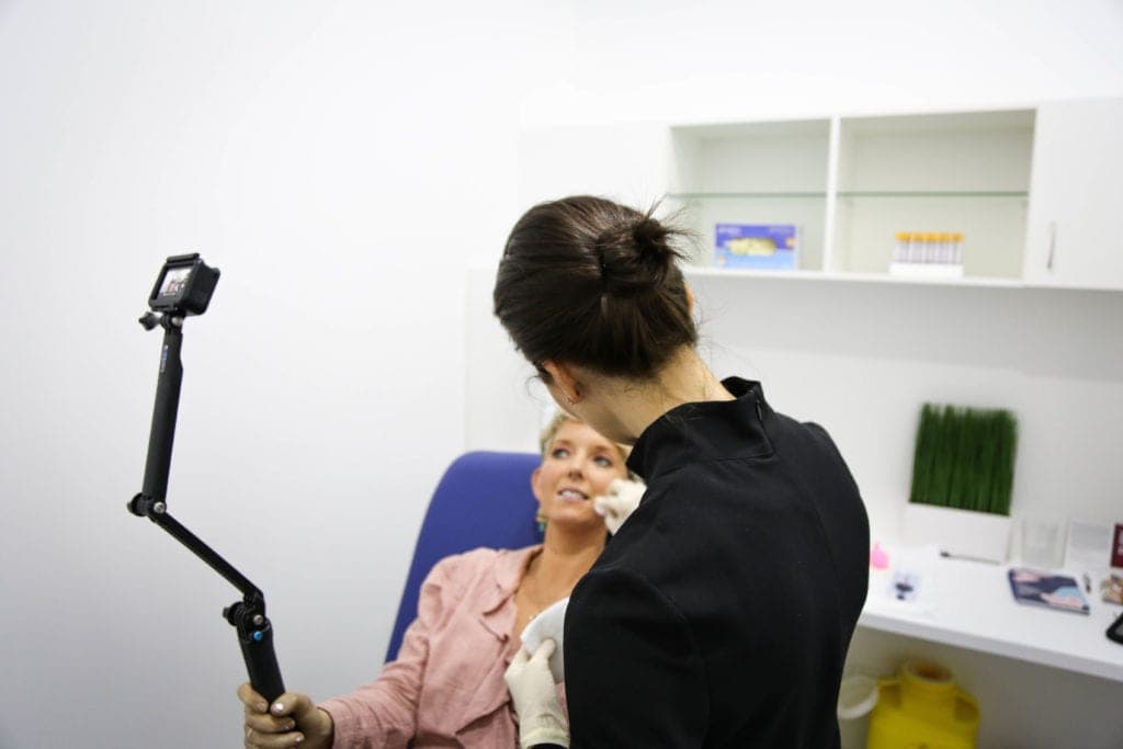 My lips were numb and with more help of some ice on them, the nurse was ready to begin. The first lip filler did hurt, I’m not going to lie! But, as they moved on to inject me another 10 times or so in total on both lips, it wasn’t actually that bad. The pain lasted for literally a second each time they injected.