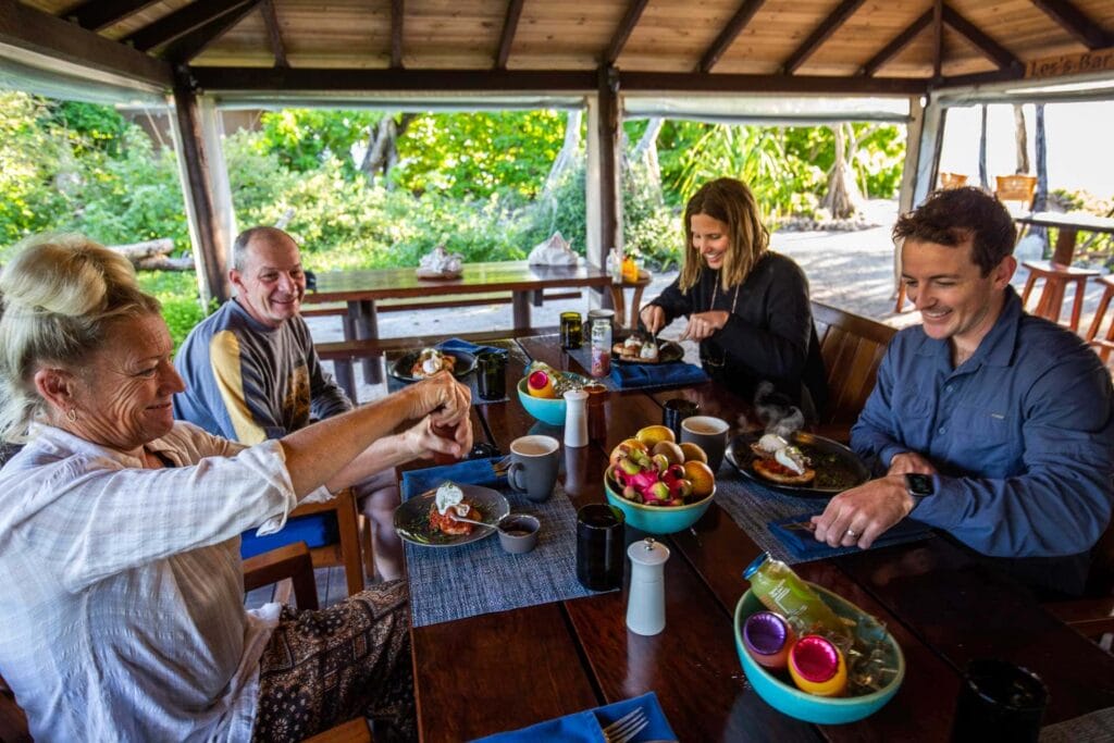 If you’re wondering about food times, you’ll be given a lot of excellent food on Wilson Island, including snacks as well as a cheese board at 5pm, before dinner at 7pm. But we’ll talk more about that later in this post.